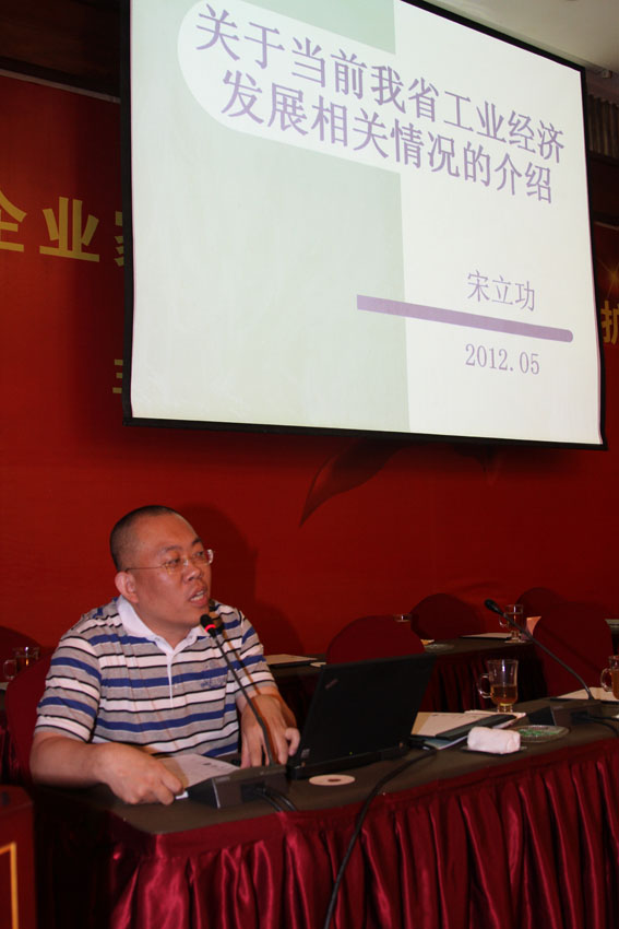 上圖:省工信廳運(yùn)行局宋立功局長做我省經(jīng)濟(jì)情況介紹