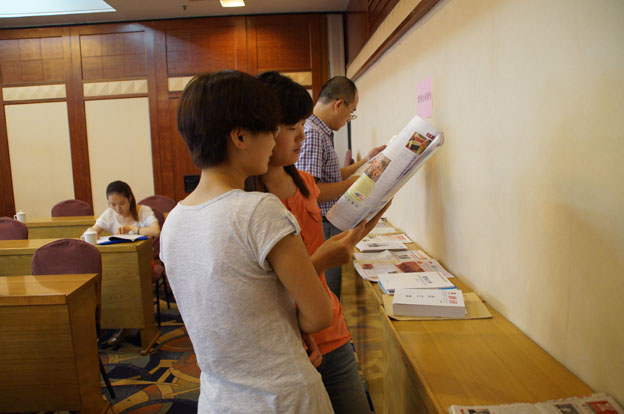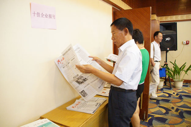 上圖:與會(huì)代表閱讀“十佳”企業(yè)報(bào)刊