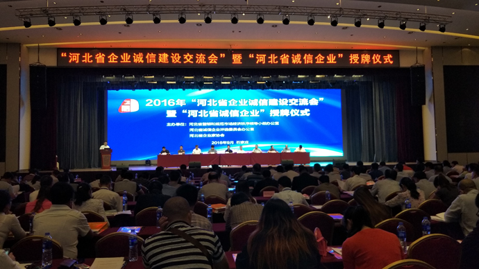 2016年9月22日,由河北省整頓和規(guī)范市場經(jīng)濟秩序領(lǐng)導小組辦公室、河北省誠信企業(yè)評選委員會辦公室、河北省企業(yè)家協(xié)會聯(lián)合主辦并組織的“河北省企業(yè)誠信建設(shè)交流會”暨“河北省誠信企業(yè)”授牌儀式在石家莊市以嶺健康城凱旋門建國大酒店隆重舉行。