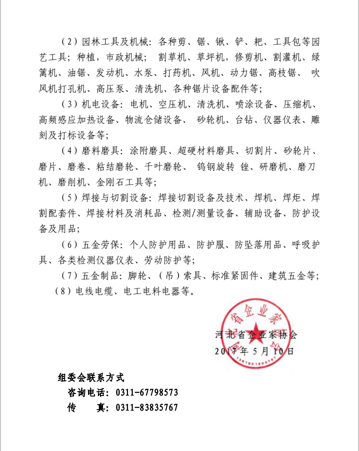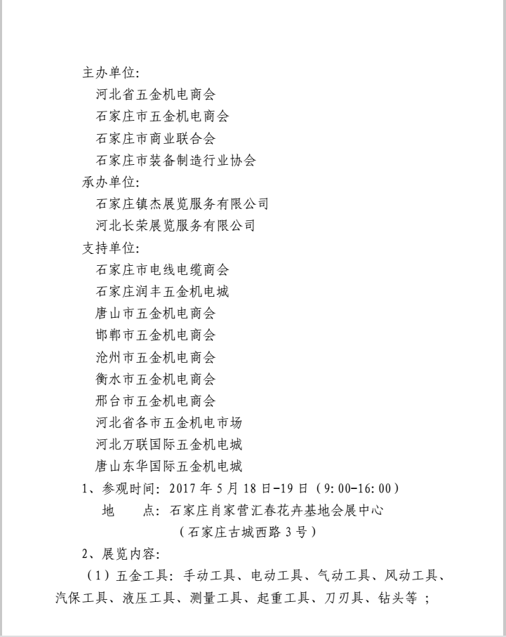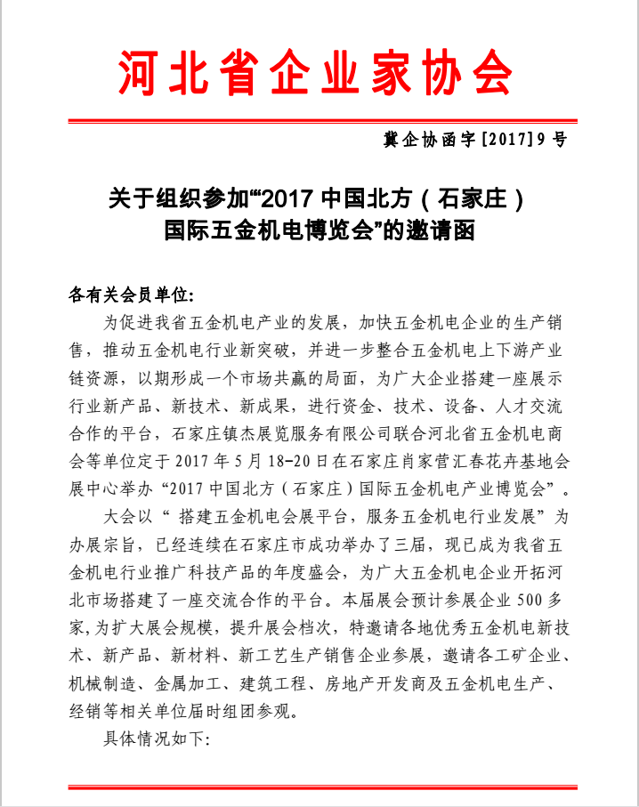 關(guān)于組織參加“2017中國北方(石家莊) 國際五金機(jī)電博覽會”的邀請函