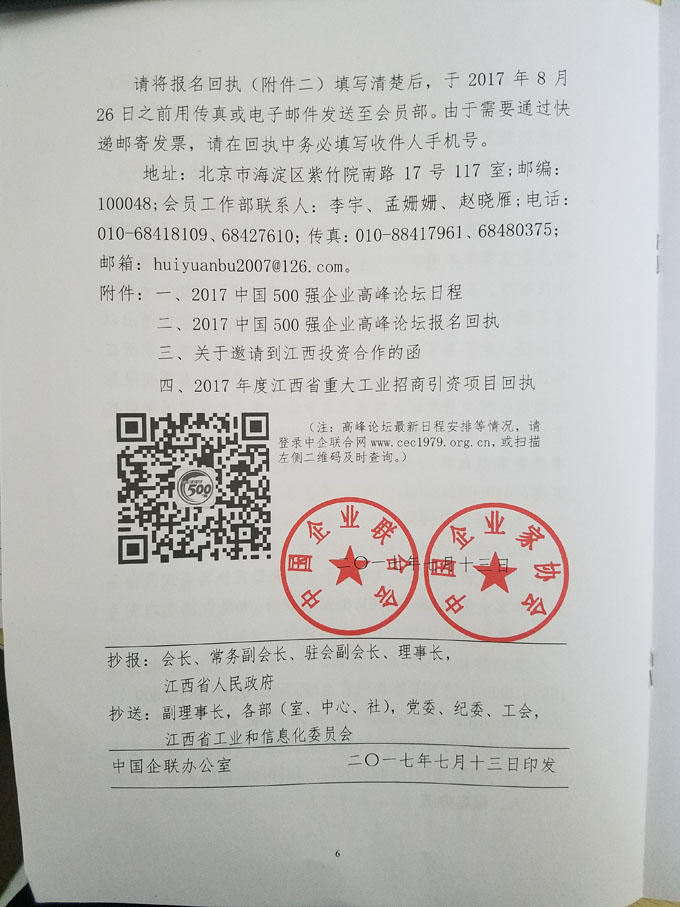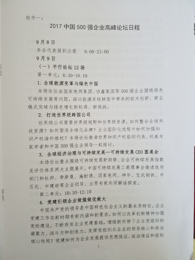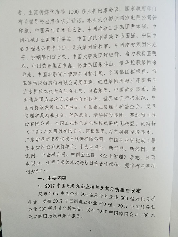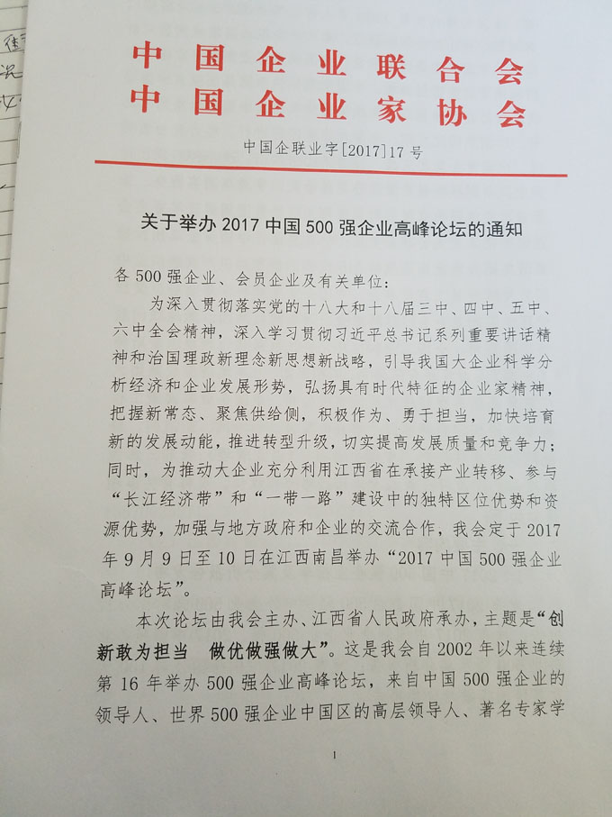 >關于舉辦2017中國500強企業(yè)高峰論壇的通知
