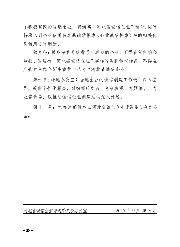 關于繼續(xù)開展“河北省誠信企業(yè)”評