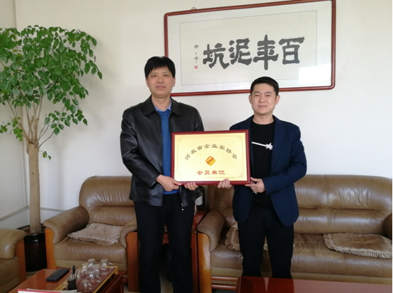 協(xié)會(huì)副秘書(shū)長(zhǎng)李亞軍(右)為河北鳳來(lái)儀酒業(yè)有限公司總經(jīng)理馬輝峰頒發(fā)會(huì)員牌匾