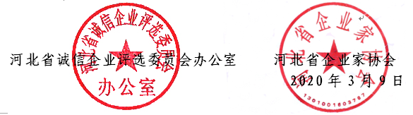 2.按《河北省誠信企業(yè)創(chuàng)建辦法》第十八條“河北省誠信企業(yè)稱號有效期兩年”的規(guī)定,2019年(含)以前當選的“河北省誠信企業(yè)”應重新申報。