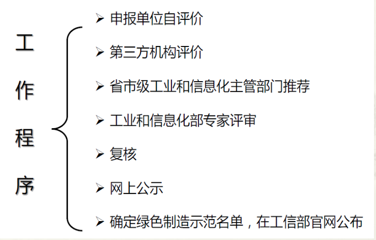 (5)工信部將在地方主管部門(mén)推薦意見(jiàn)的基礎(chǔ)上,依據(jù)相關(guān)評(píng)價(jià)標(biāo)準(zhǔn)組織專家進(jìn)行論證,必要時(shí)采用現(xiàn)場(chǎng)抽查等方式,確定國(guó)家級(jí)綠色工廠企業(yè)示范名單,公示后向社會(huì)發(fā)布。