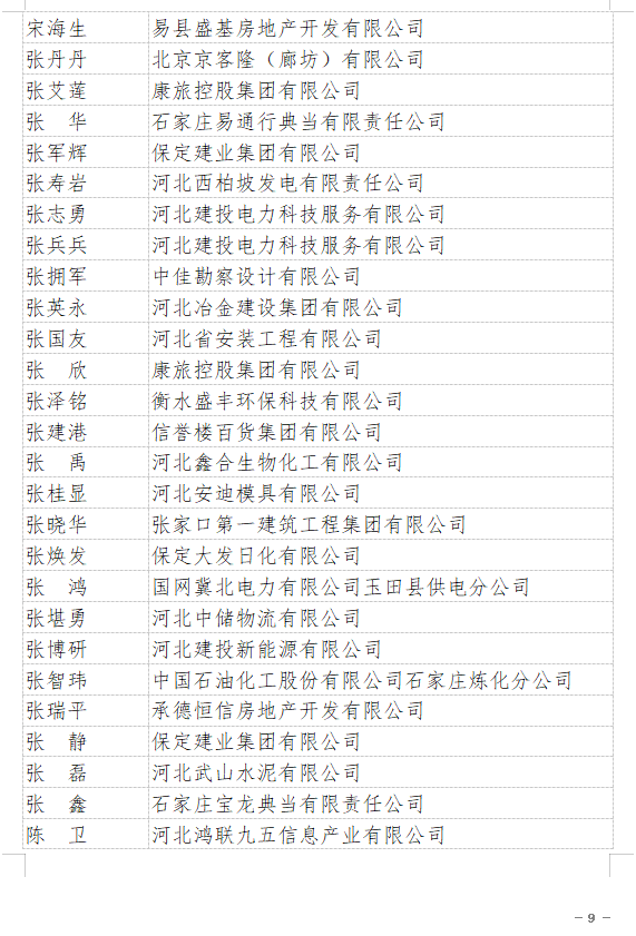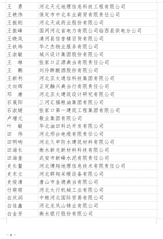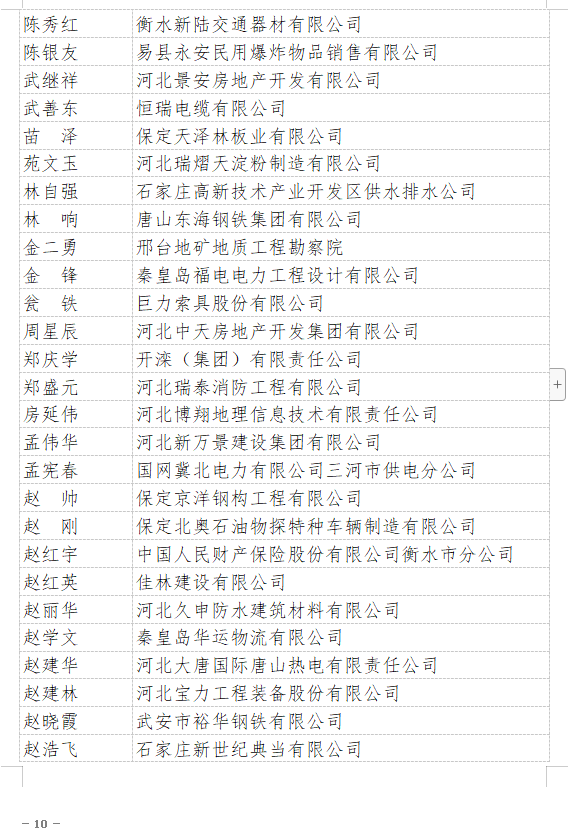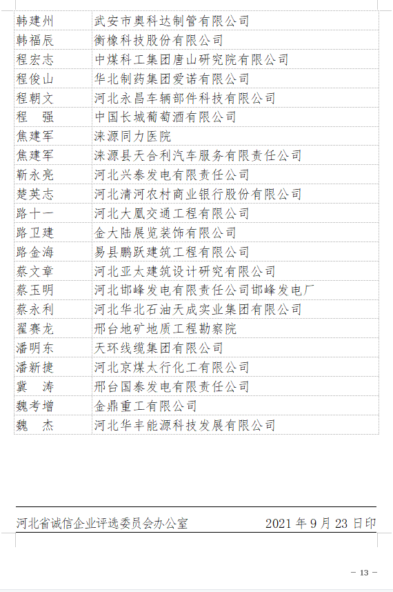 2021年“河北省企業(yè)誠信建設(shè)優(yōu)秀工作者”名單