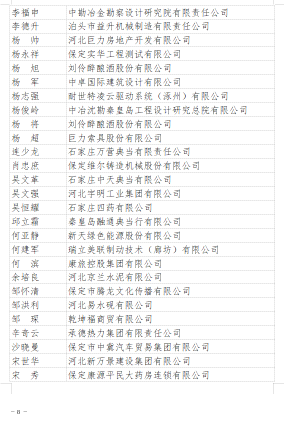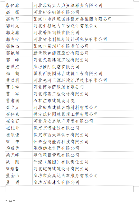 附件:2021年“河北省企業(yè)誠信建設(shè)優(yōu)秀工作者”名單