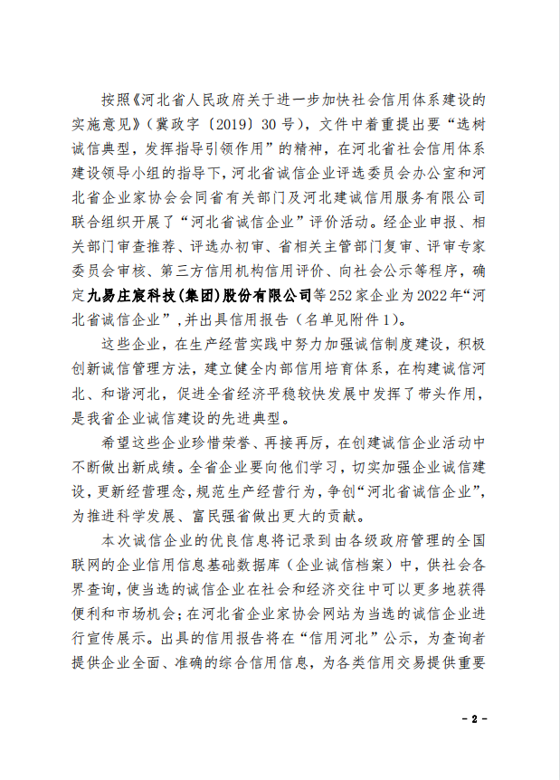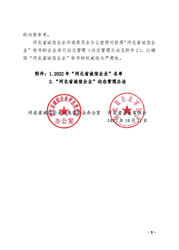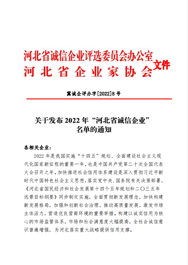 2022年“河北省誠(chéng)信企業(yè)”名單
