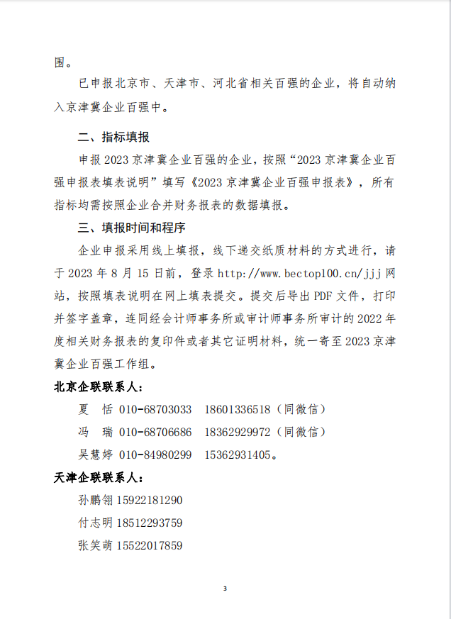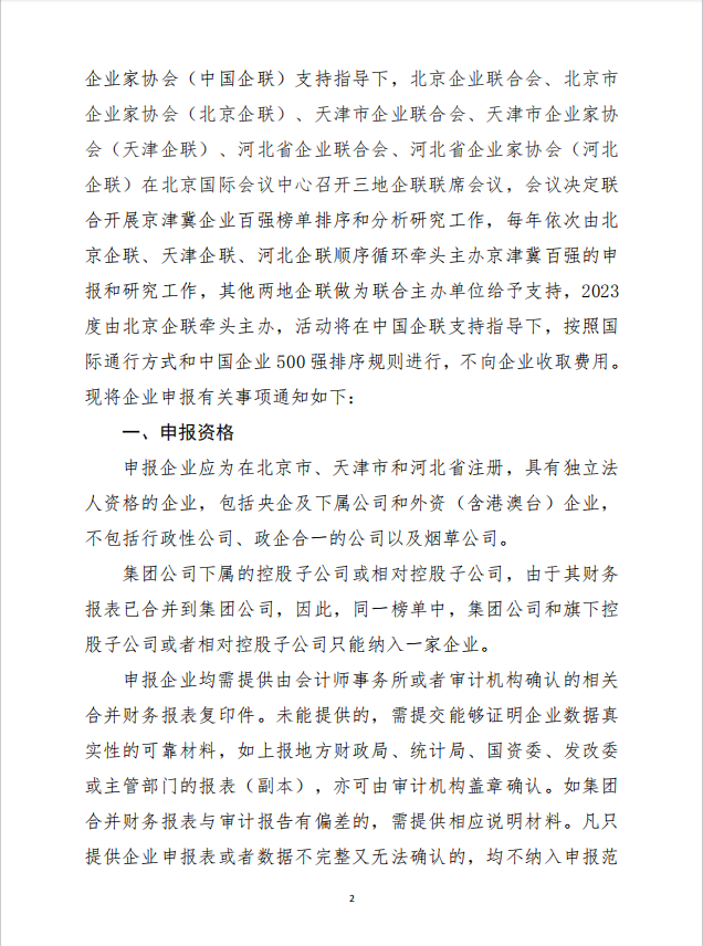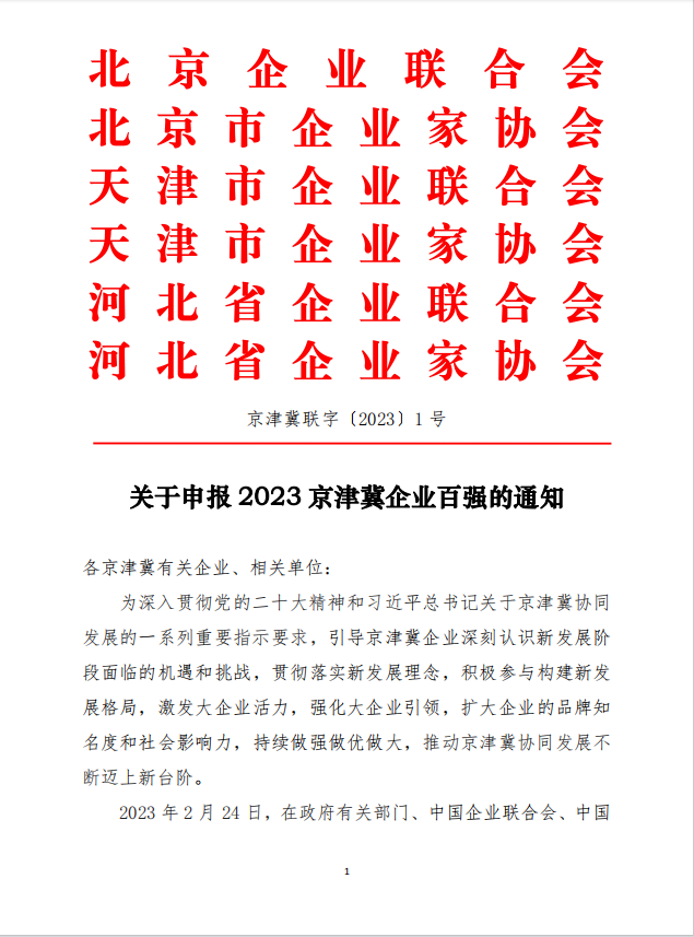 >關于申報 2023 京津冀企業(yè)百強的通知