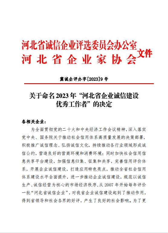 2023年“河北省企業(yè)誠信建設(shè)優(yōu)秀工作者”名單